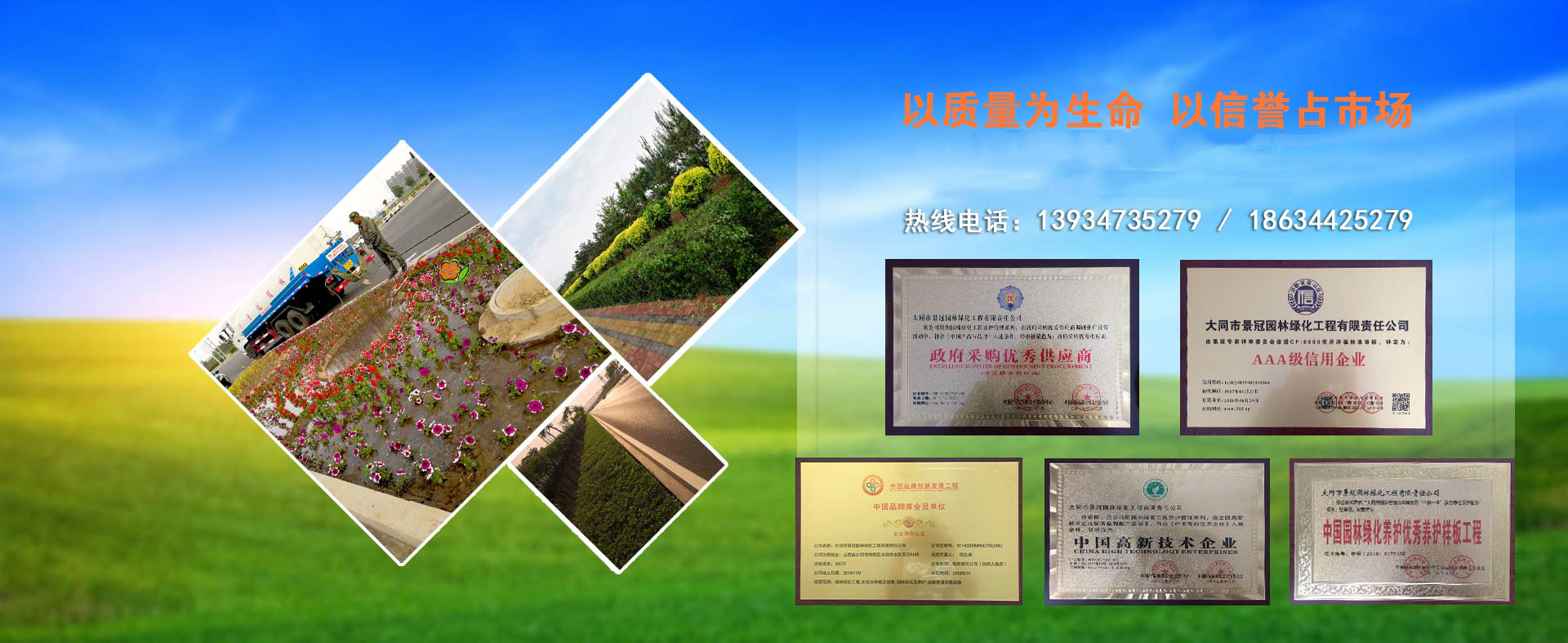 大同市景冠園林綠化工程有限責任公司是一家根植于設計、施工、植保養(yǎng)護、苗木花卉生產于一體的園林景觀企業(yè)。公司“以質量為生命”、“以信譽求發(fā)展”這是公司一貫的經(jīng)營宗旨。并以創(chuàng)新,誠信,綠色,共享的發(fā)展理念,創(chuàng)造良好的企業(yè)環(huán)境。堅持愛綠,護綠,保綠的方針為城市增添一份綠色,用綠色擔當生態(tài)建設使命是我們共同追求的價值和企業(yè)目標。以全新的管理模式,完善的技術,周到的服務,卓越的品質為生存根本。幾年來我們致力于園林景觀植物領域的研究,在城市綜合體景觀,校園園林景觀,道路景觀,生態(tài)農業(yè)景觀,美麗鄉(xiāng)村景觀,濕地景觀等多個領域參與規(guī)劃設計施工。不斷加大科技投入力度,加強人才的儲備,網(wǎng)絡技術的培訓,提升自主創(chuàng)新能力,不斷完善企業(yè)文化,用超前的技術制定出一套完整的園林植保技術管理方案。我們堅持以擔當為使命,用戶至上,服務至上,秉持初衷,不忘初心,實實在在,心無旁騖做好植保養(yǎng)護主業(yè),打造屬于自己的企業(yè)品牌,好好服務客戶,打動客戶。